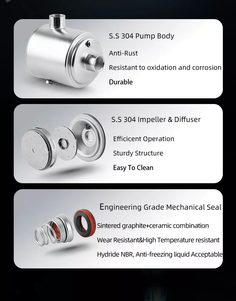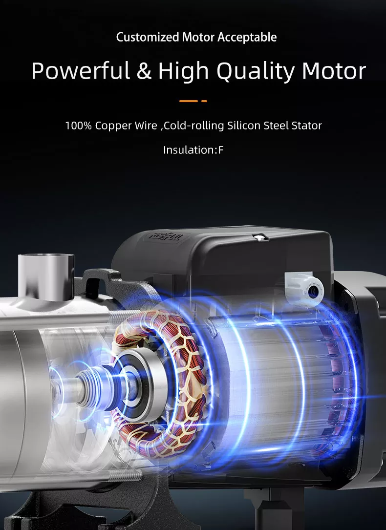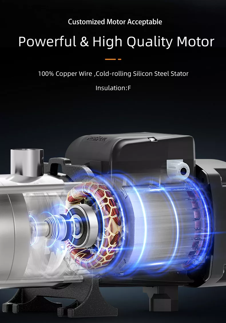 Det, der adskiller vores smarte multistages trykpumpe, er dens intelligente funktioner, der gør operationen til en leg. Takket være sin smarte teknologi skal du ikke justere trykniveauer. Sag farvel til komplicerede kontroller og manuelle justeringer - denne pumpe tager gætteriet ud af pumpevand og sikrer optimal ydelse hver gang.